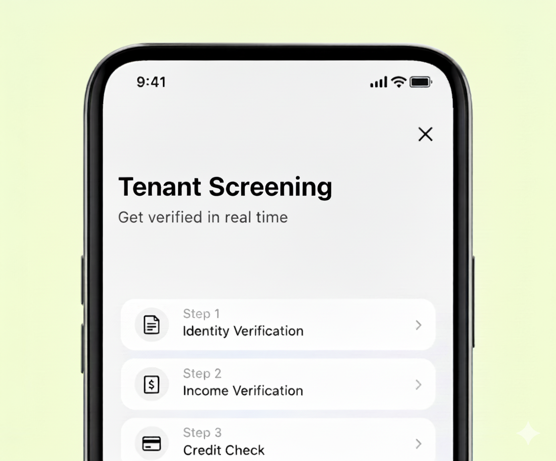 - 5-check tenant screening (ID, Income, Credit + optional Landlord Referencing & Co-signer)